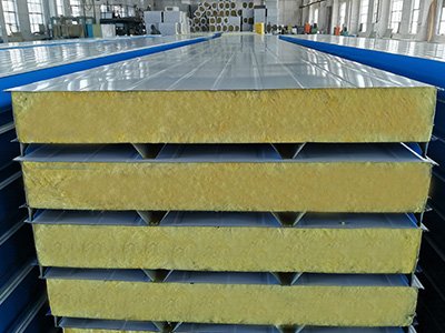 彩鋼玻璃絲棉夾芯板是選用兩層高品質的彩鋼板或采用不銹鋼板、鋁板、鍍鋅板做面板,輥壓成型好,將分條厚的玻璃絲棉放入兩層鋼板之間,通過高強防火粘結劑,將玻璃絲棉與彩鋼板強力粘接,成型后的彩鋼玻璃絲棉夾芯板外形優美、平整、剛韌具有良好的防火、保溫、隔音等性能,是工業建筑圍護系統的產品選擇之一。